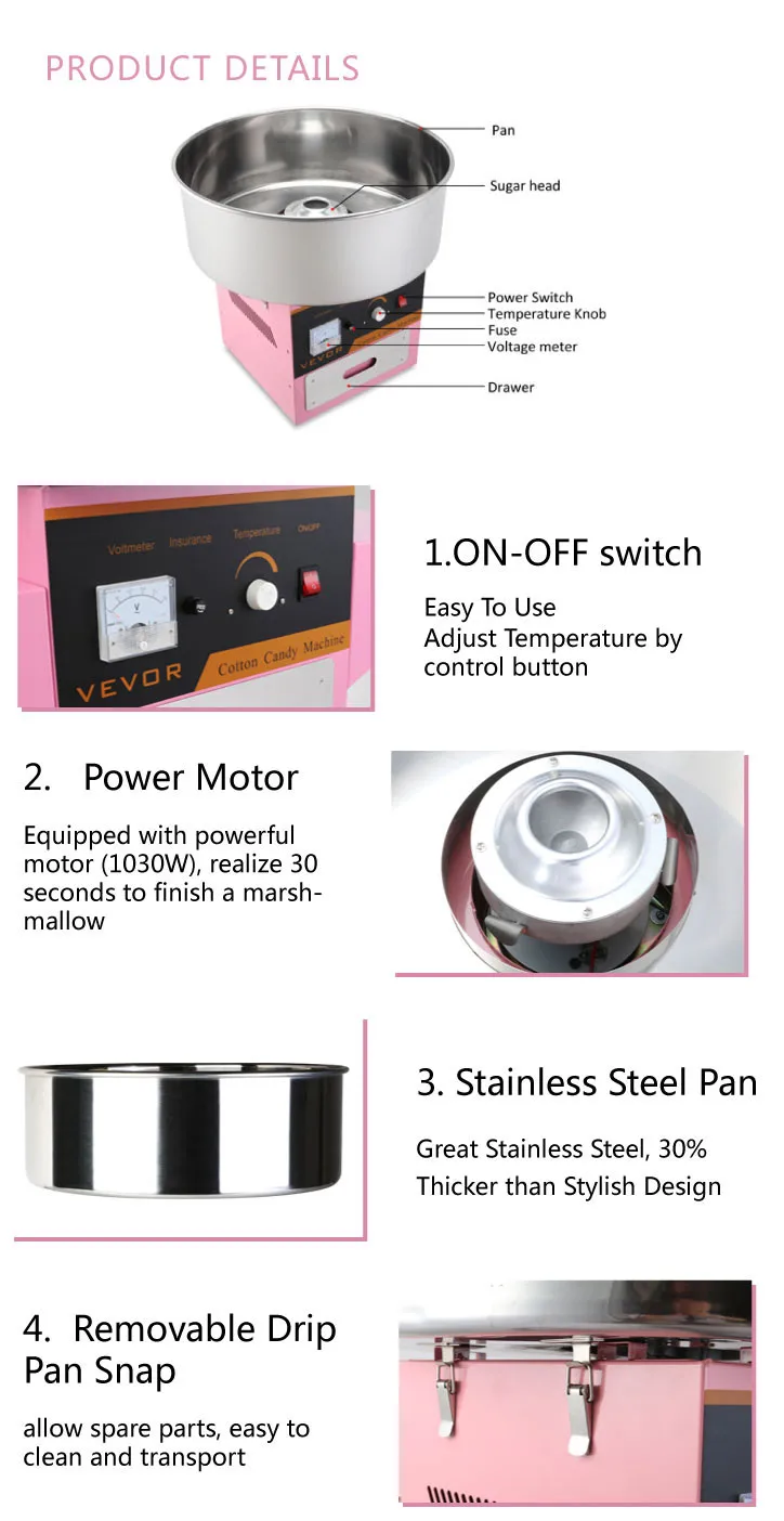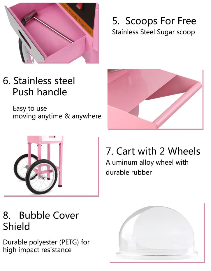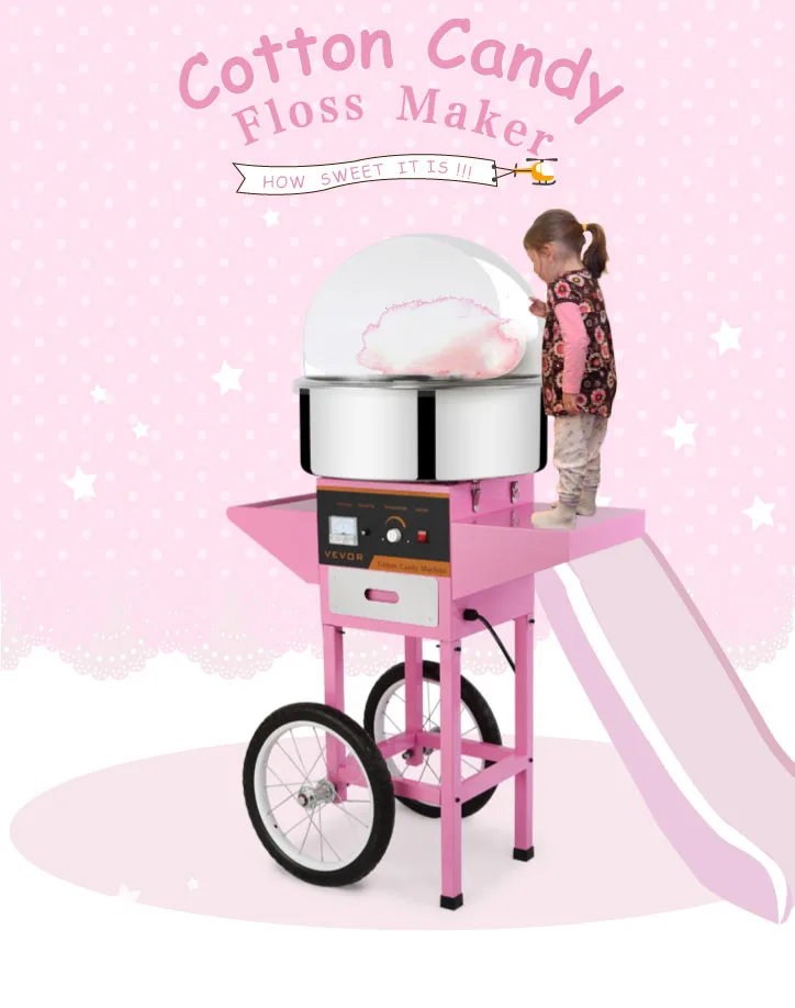This floss sugar machine is great for birthday parties, graduation parties, festivals, carnivals and fairs.