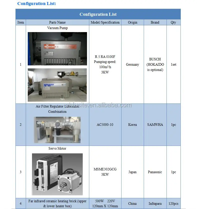 11. Heating system: Far infrared ceramic heating bricks with independent control system, each ceramic heating brick is controlled via PLC integration control on touch screen to ensure the sheet is heated uniformly over its entire surface area and throughout its thickness. Adopts fully enclosed furnace to reduce heat loss.
