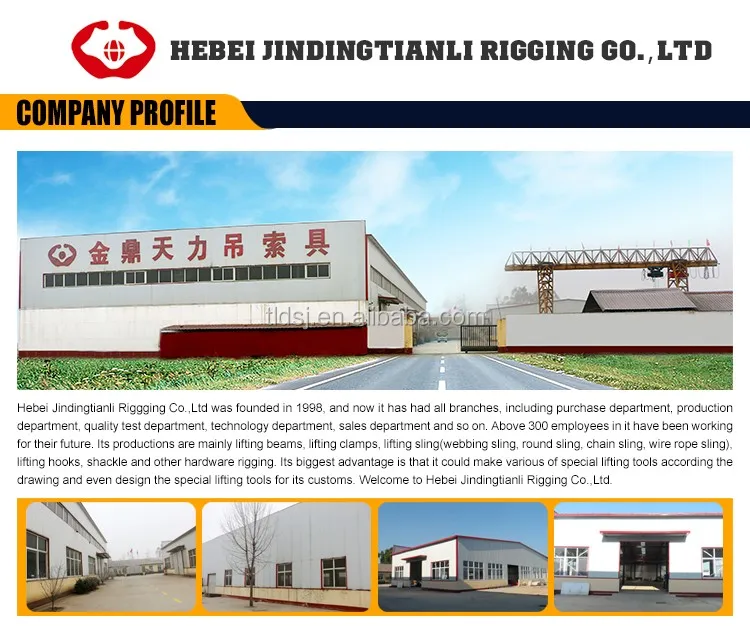 2.Our main products are webbing sling,wire rope,lifting beam, lifting clamp, ratchet tie down, chain, shackle and hook.