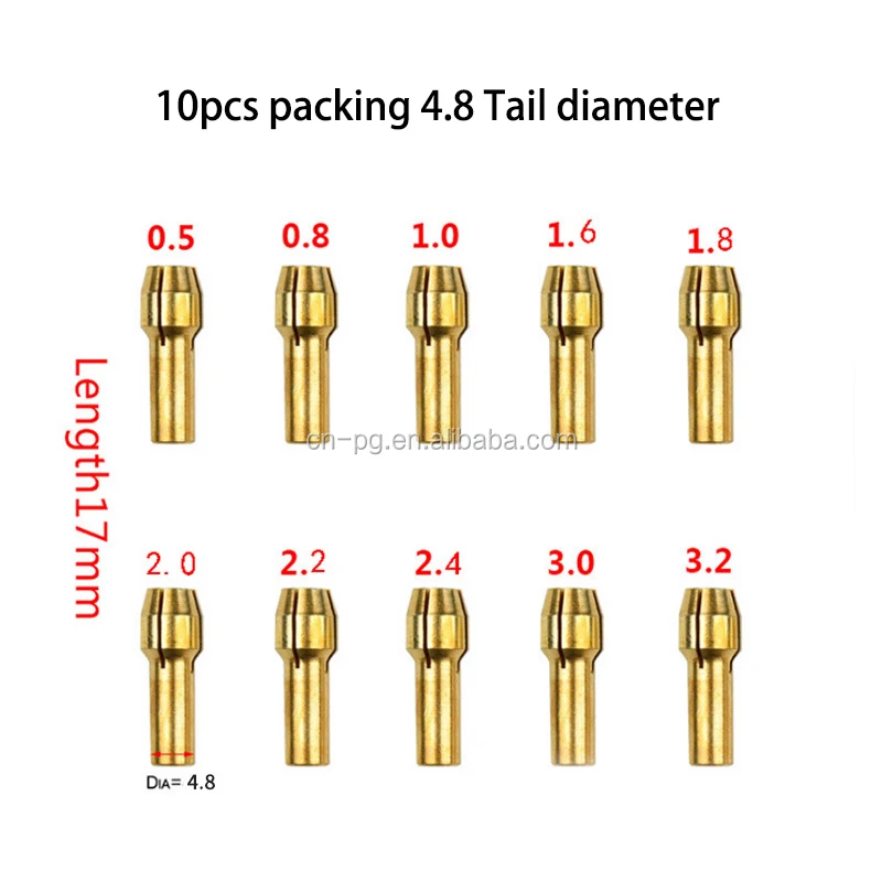 electric grinder three jaws copper clamping chuck 0.5-0.8-1.0-1.6-1.8-3.2 collet copper filling tail diameter of 4.8/4.3