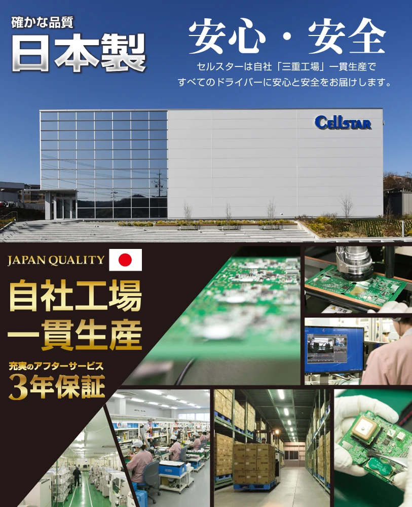 CELLSTAR DRIVE RECODER IS A STAR PRODUCT WHICH IS TOTALLY DESIGNED AND MADE IN JAPAN(IN CELLSTAR MIE FACTORY).