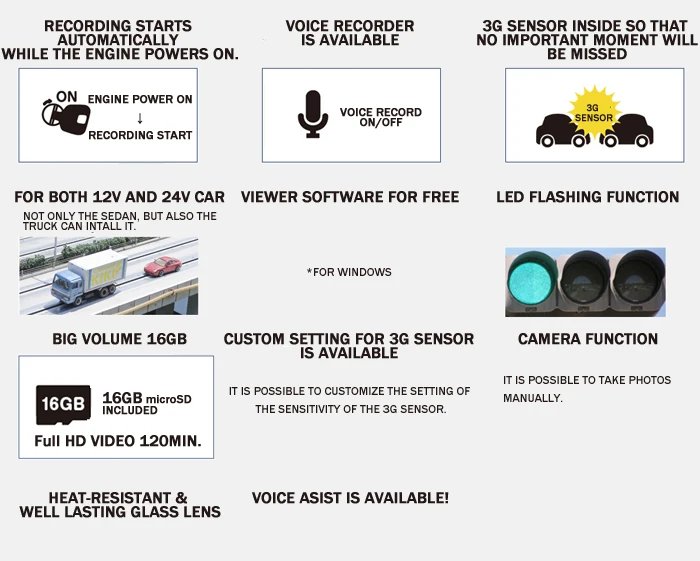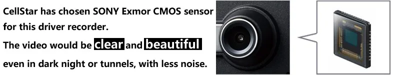 THIS RECORDER IS EQUIPED WITH SONY Exmor CMOS SENSOR, EVEN IN THE DARK NIGHT AND TUNNEL ,WHERE THERE IS NOT ENOUGH LIGHT, THE VIDEO COULD KEEP CLEAR AND BEAUTIFUL . IT WILL NEVER MISS ANY IMPORTANT MOMENT!