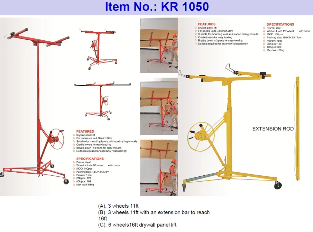 Drywall lift, 11ft and 16ft. Pls find the specification as below.