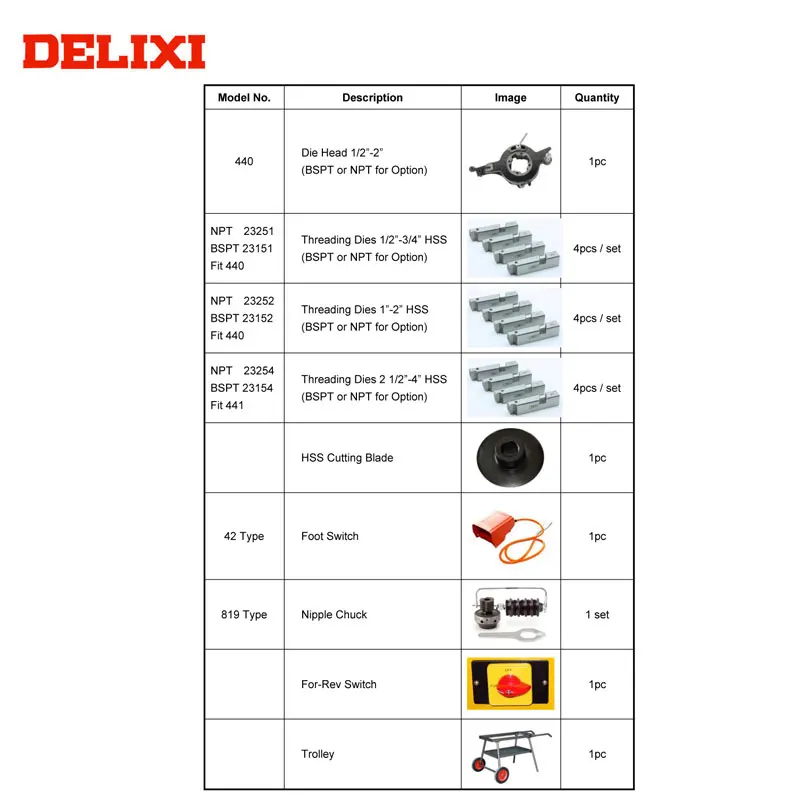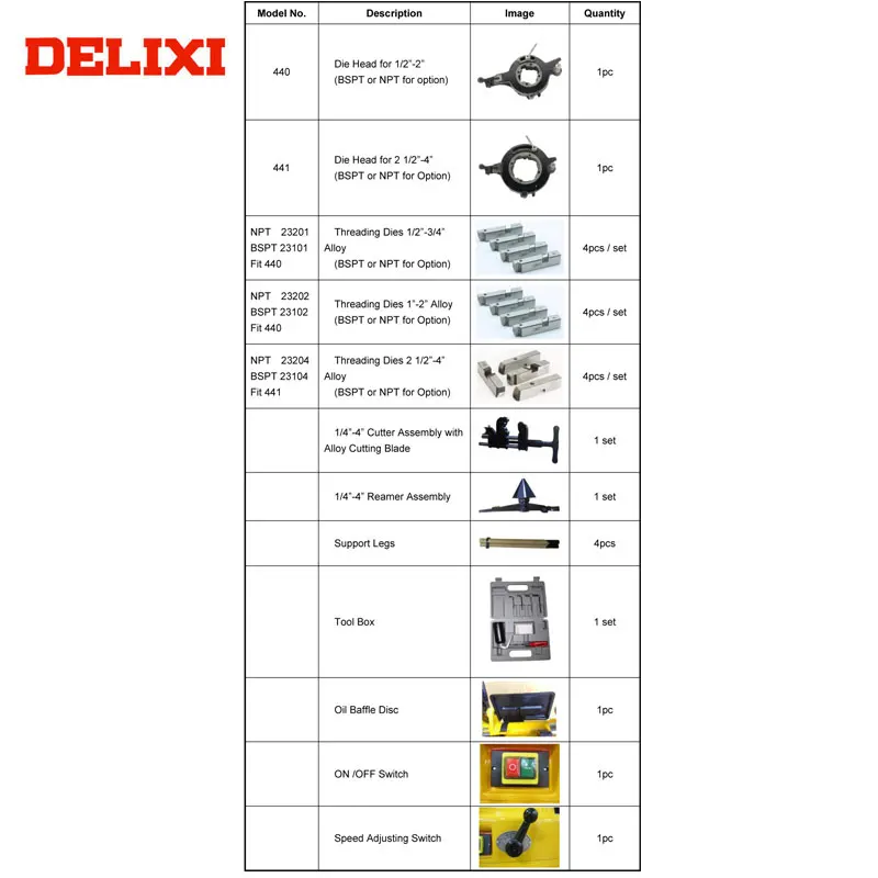 4.Order Information of DLX100D1 1/2" To 4" 750W Plumbing Tools 4 in. pipe threading machine electric pipe threader