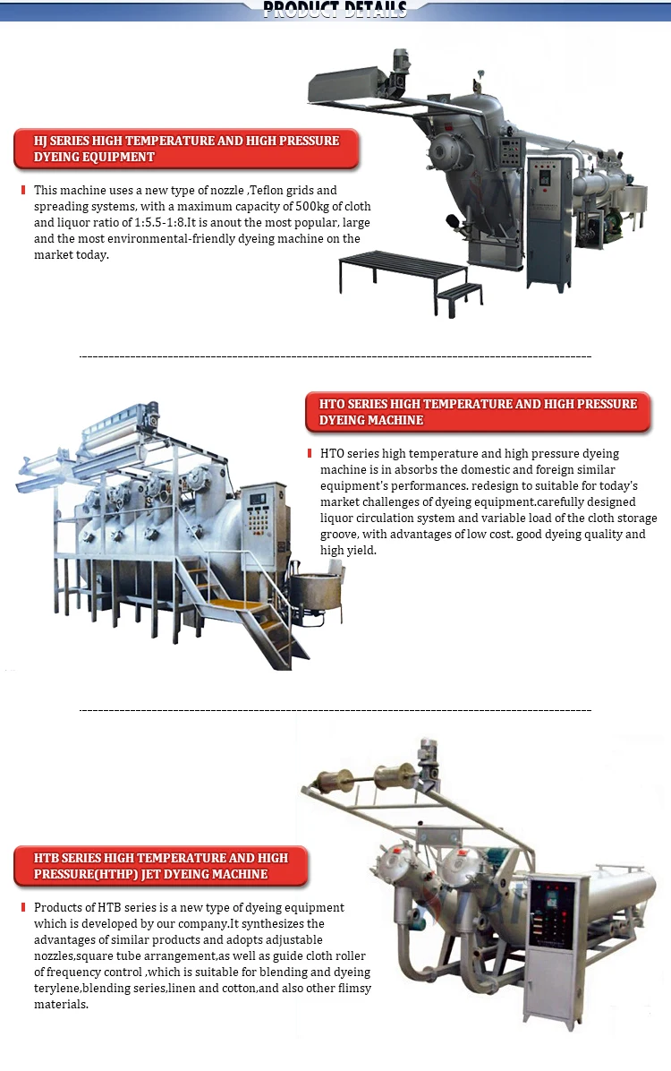 HTO series high temperature and high pressure dyeing machine is in absorbs the domestic and foreign similar equipments’ performances ,redesign to suitable for today's market challenges of dyeing equipment, carefully designed liquor circulation system and variable load of the cloth storage groove, can make all kinds of thick and thin cloth in very low bath ratio obtained satisfactory dyeing effect. With advantages of low cost,good dyeing quality and high yield