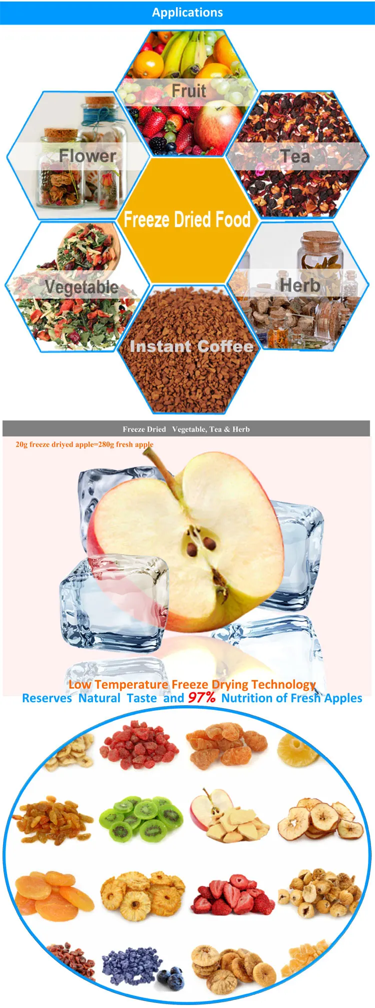 4-6Kg/batch freeze drying capacity for food, vegetable, fruit, dessert, dairy products like milk.