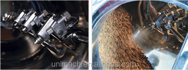 3. Automatic feeding device stopped the cross pollution, convenient to feed, with high efficiency and full direction. The coating boiler equipped in the high pressure spray gun, which can rotate 1800, there set a cleaning sprayer at the air exhaust exit and hot air mouth, which can be rotated in automatic and full direction, without dead corner more convenient to clean.