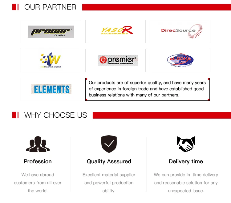 1.Q:Can you send a sample for reference. A:Yes, we are glad to offer you a sample for free if you give us the DHL or TNT collent account. 2. Q:what is your MOQ ? A:500sets Each model 3.Q: what is your payment method ? A:We usually accept TT payment(30% deposit, the balance against BL copy), L/C at sight 4.Q:How to make an order? A:(1)Sample approval (2)pay 30% deposit or Open LC after receiving our PI (3)Production (4)mass production sample confirmation (5)arrange shipment (6)Prepare all documents required (7)Balance payment (8)Delivery original documents or BL Telex release 5.Q:How to control the quality ? A:We have the complete production operation procedure and strict quality control procedure from the incoming material quality control, in processing quality control and final quality control. 6.Q:How to solve the problems after sales? A:We will offer a excellent after sales service, after clearing the problem and we will take all responsibility for your loss. Summarize and evaluate the customer complaint handling process, learn from experience and lessons, put forward improvement measures, constantly improve the business management and business operation process, improve customer service quality and level, and reduce the complaint rate. |