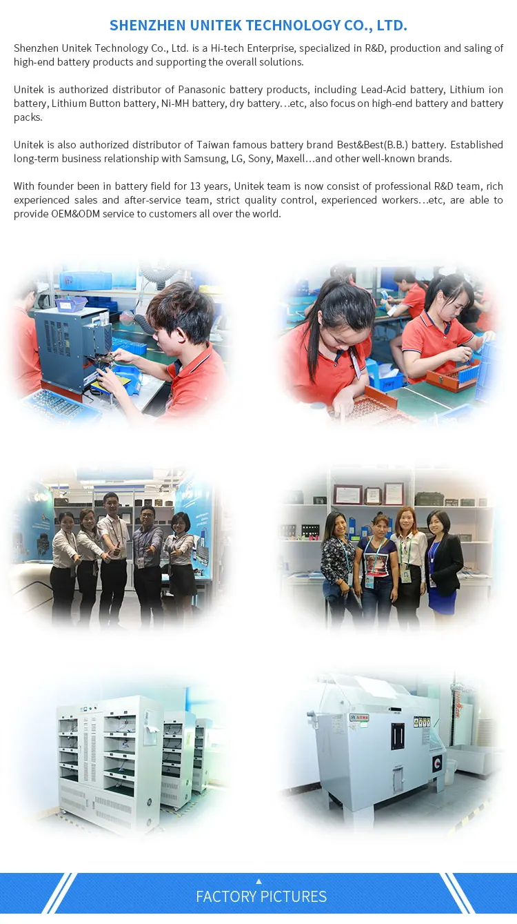 Unitek is authorized distributor of Panasonic battery products, including Lead-Acid battery, Lithium ion battery, Lithium Button battery, Ni-MH battery, dry battery…etc, also focus on high-end battery and battery packs.