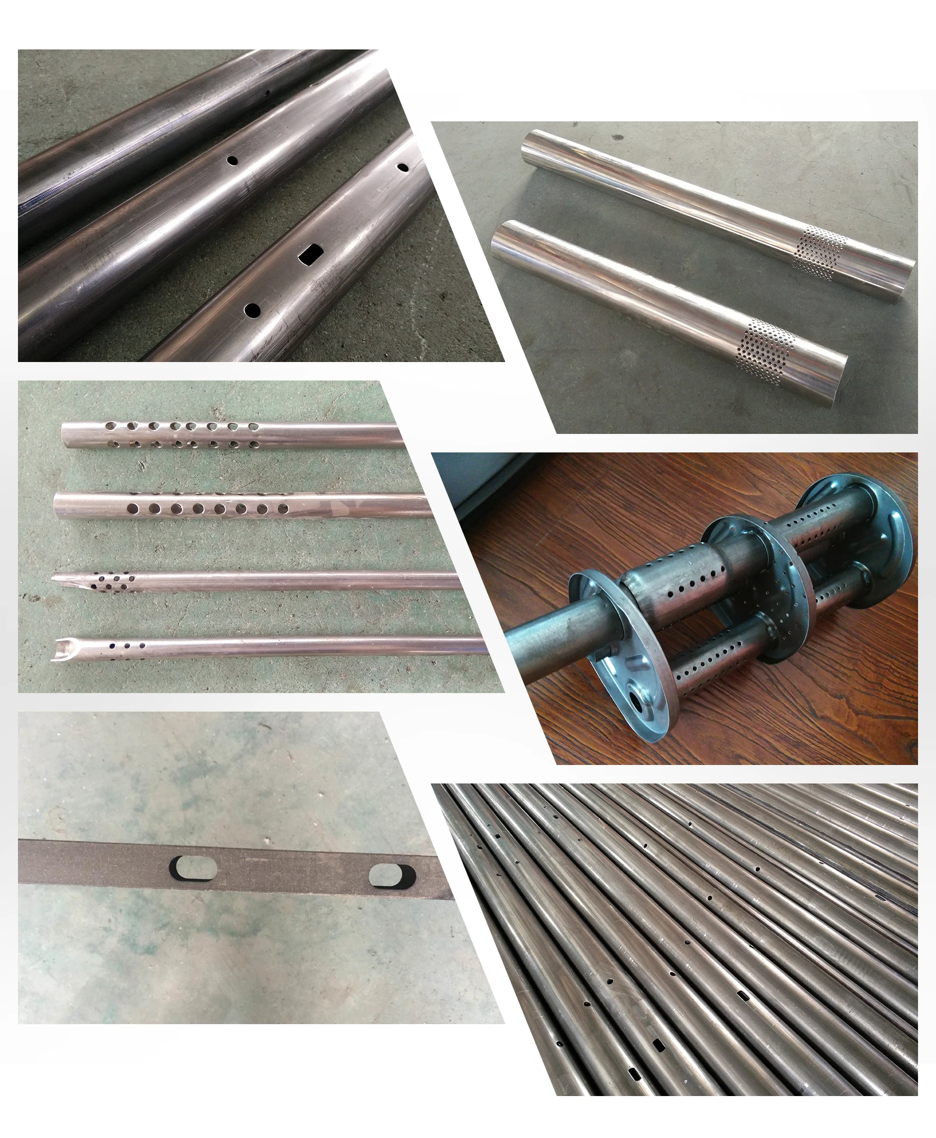 At present, the traditional punching process on the pipe: making the mold, drilling with the drilling machine (see above pictures and video), the production efficiency is low, the product quality is unstable, and the safety is not good;By using our company’s high-precision automatic multi-size hole pipe punching machine, we can punch out a variety of hole shapes at one time. The equipment uses the Japanese Mitsubishi servo system to control the movement and rotation of the pipe forwards and backwards, to achieve high-precision multi-size hole’s isometric ,unequal space, rotary punching. The quality stability of mass production is very high, the production efficiency is 5-6 times higher than that of the traditional process, and the safety is also greatly improved.