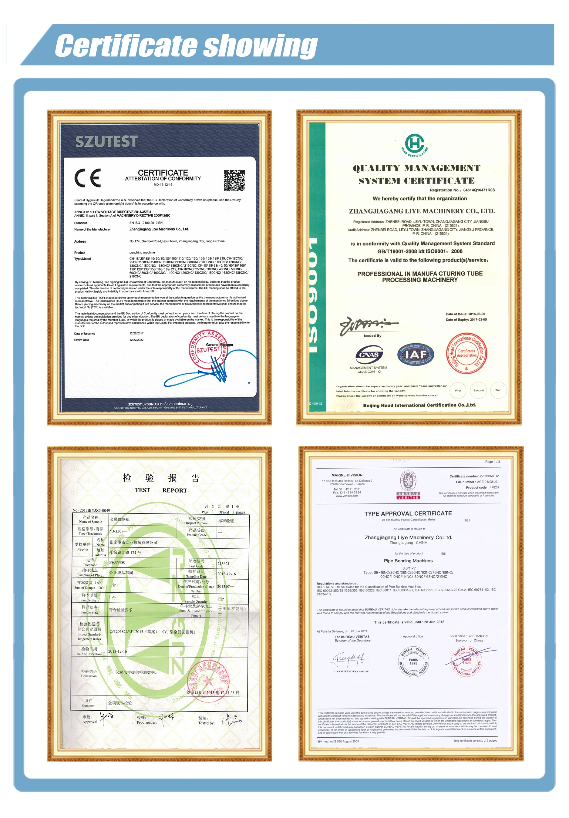 Zhangjiagang Liye Machinery Co., Ltd. (hereinafter referred to as the “Company”) is specialized in manufacture of machining equipment for metal pipes. The Company covers an area of more than 10,000 m2 with total assets of over CNY 20 million. The main products include 9 series and over 100 models, i.e. pipe machining line, pipe cutter, pipe bender, pipe end forming machine, chamfering machine, gear grinding machine, riveting machine, arc machine and bending press.