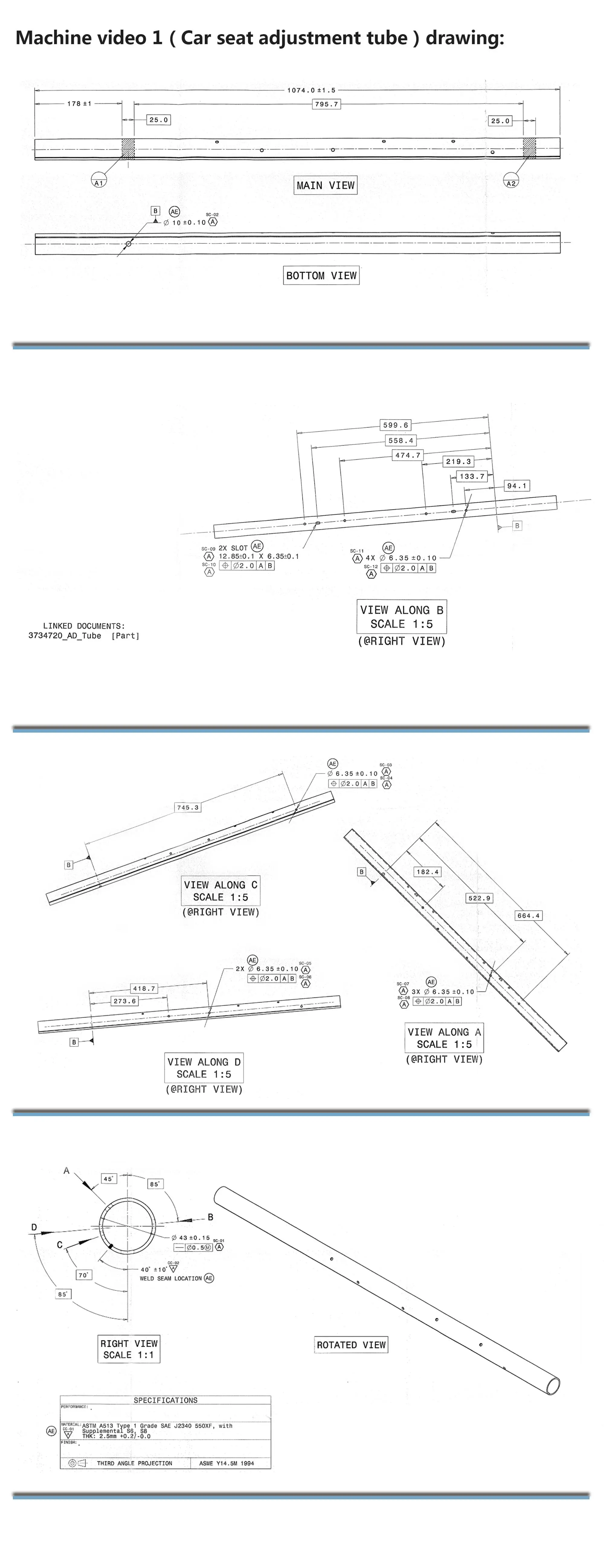 The tube shows on the first video is the angle adjustment tube for the rear seat of the car, and to produce the eight directions adjustment tube for the high-grade car seat also needs our punching machine .