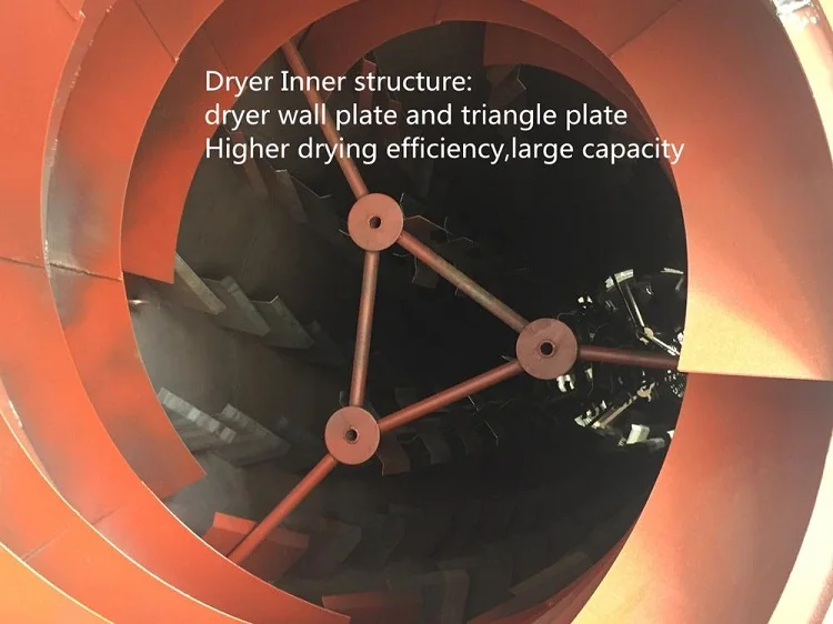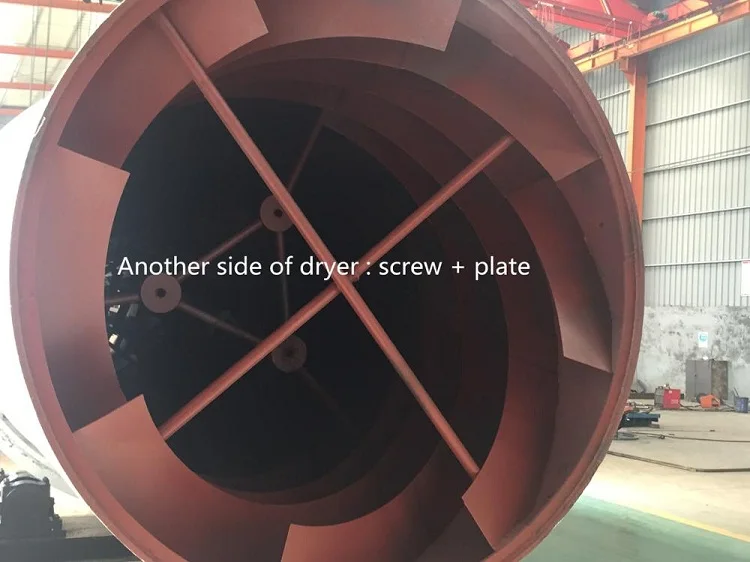 | The another design of Rotary Dryer Machine for Drying Sawdust used the screw + plate structure, the raw materials entered from one side of dryer, and discharged from the another side of dryer, that makes sure the drying efficiency. |