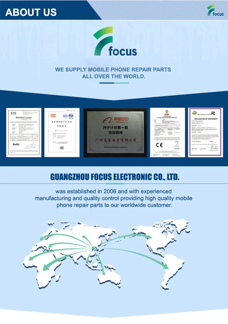 | About us | Focus Electronic was established in 2006 and with experienced manufacturing and standard quality control system providing high quality mobile phone repair parts to our worldwide customer |