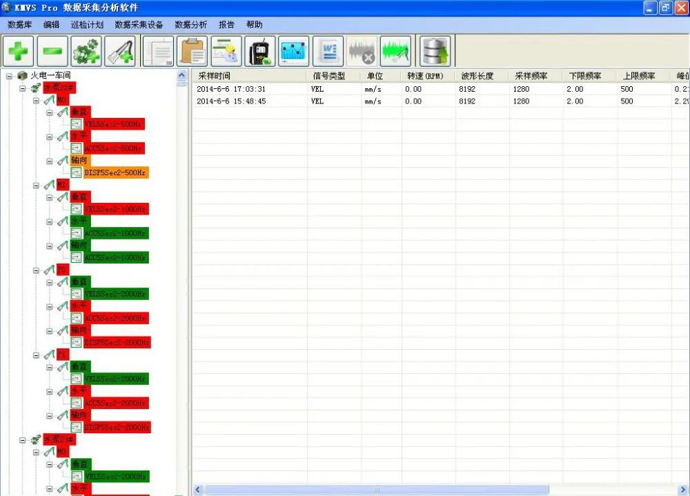 As the software platform of predictive maintenance system, KMVS Pro has the functions of equipment condition data collection and management, machine status alarm, trends and fault diagnosis.It provides the user with a convenient and flexible work platform, which enables it to manage machine status data, collect schedule data, evaluate machine status, analyze machine fault and put forward predictive maintenance report.