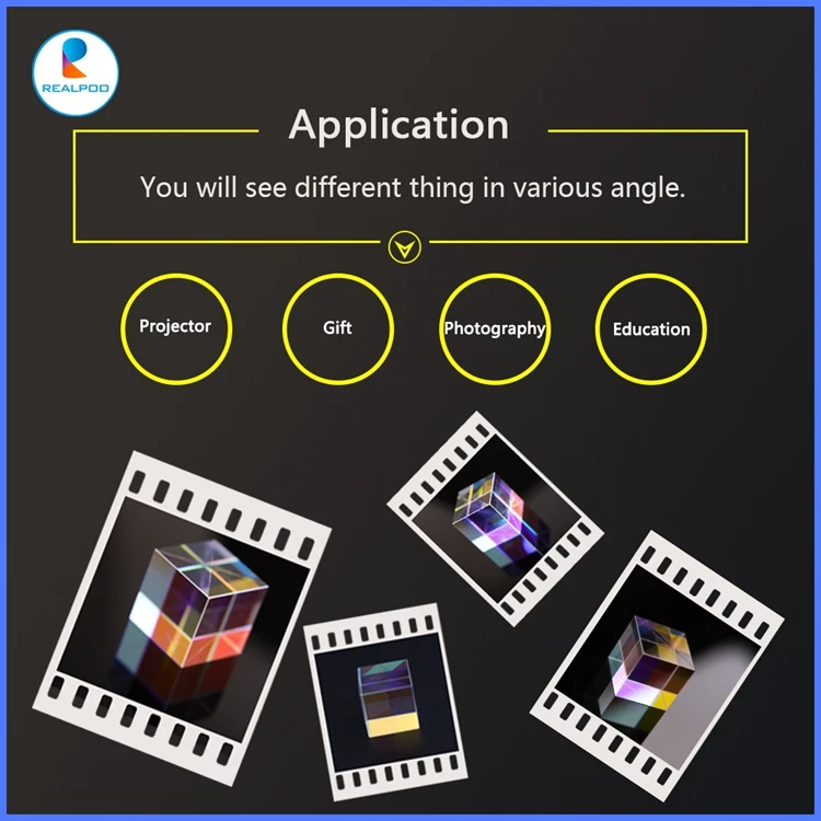 X-cube prism is : when red light, blue light and green light into prism, whilte light would always be out from fourth surface .It is important component of projector. We have size like 5mm,8mm, 10mm, 12.7mm,15mm, 18mm, 20mm, 23mm25mm, 30mm,34mm, 40mm, 50mm etc.
