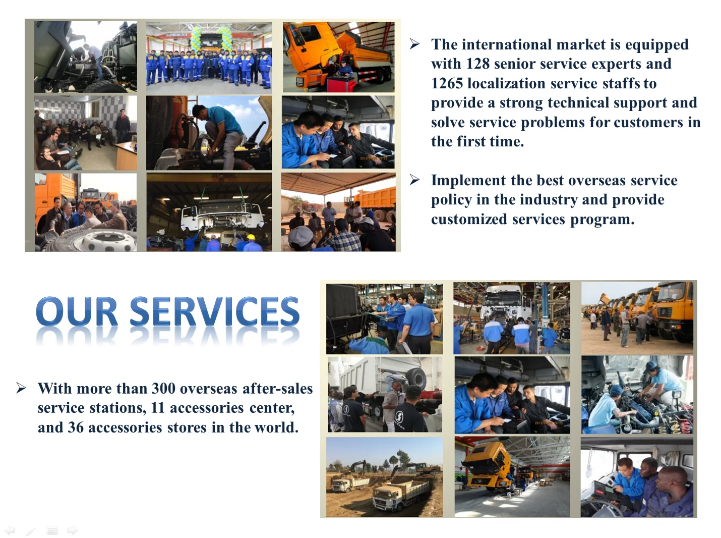 With more than 300 overseas after-sale services stations, 11 accessories center,and 36 accessories atores in the world.