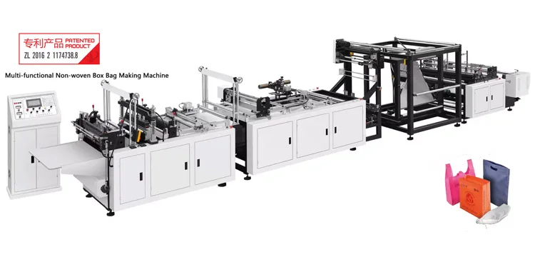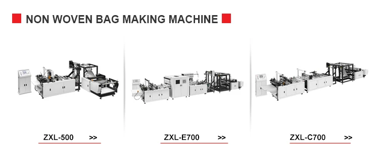 ZXL-C700 non woven flat bag making machine adopts mechanical, electrical, optical and pneumatic integration technology, suitable for non-woven fabric, different specs flat bag, D-cut, drawstring bag, bottom gusset bag, side gusset bag and box bag can be made by this machine.