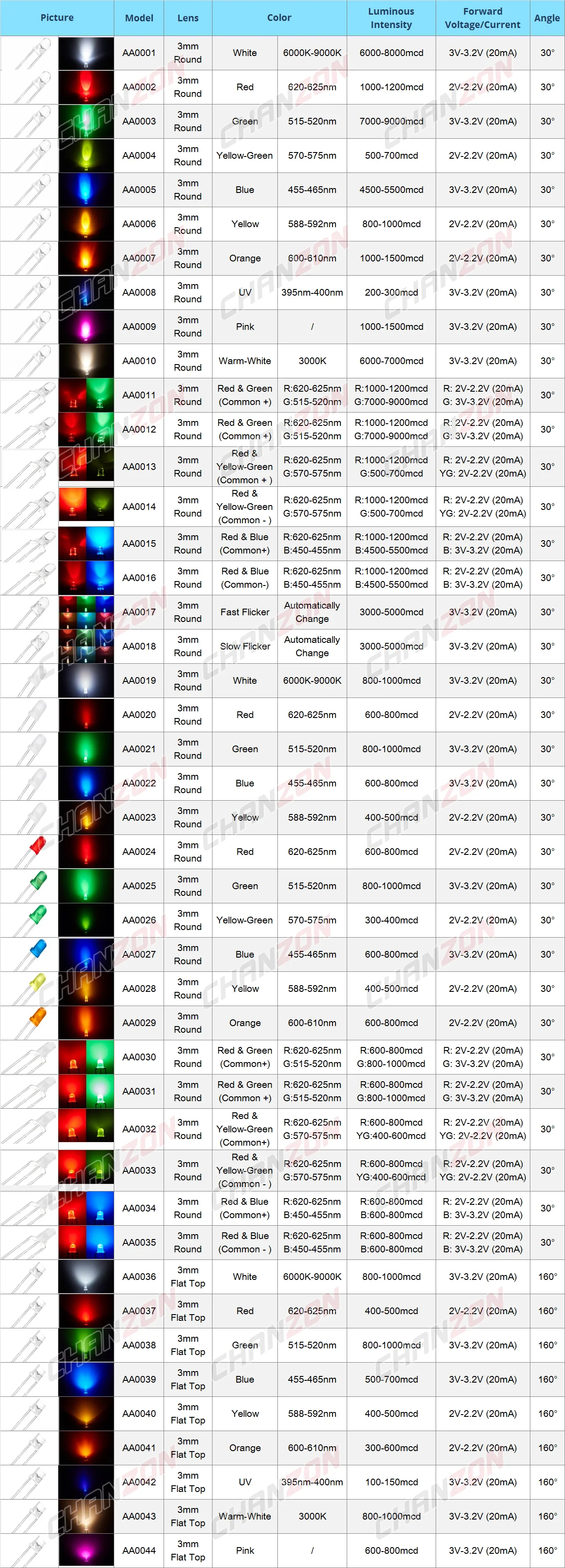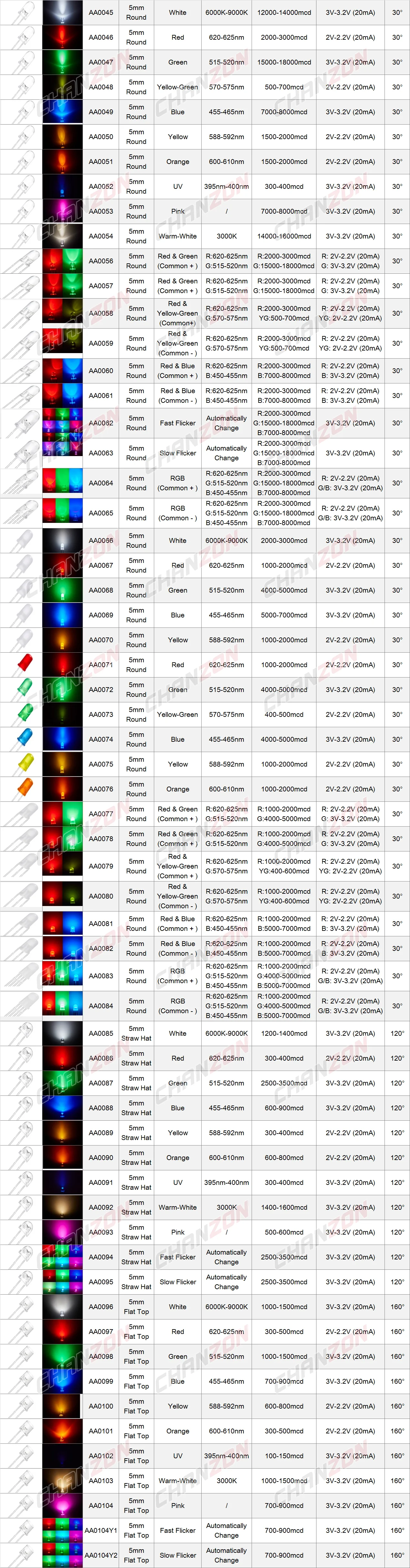 Emitting Color: White / Red / Green / Blue / Yellow / Orange / Pink / UV / Warm-white / Yellow-green