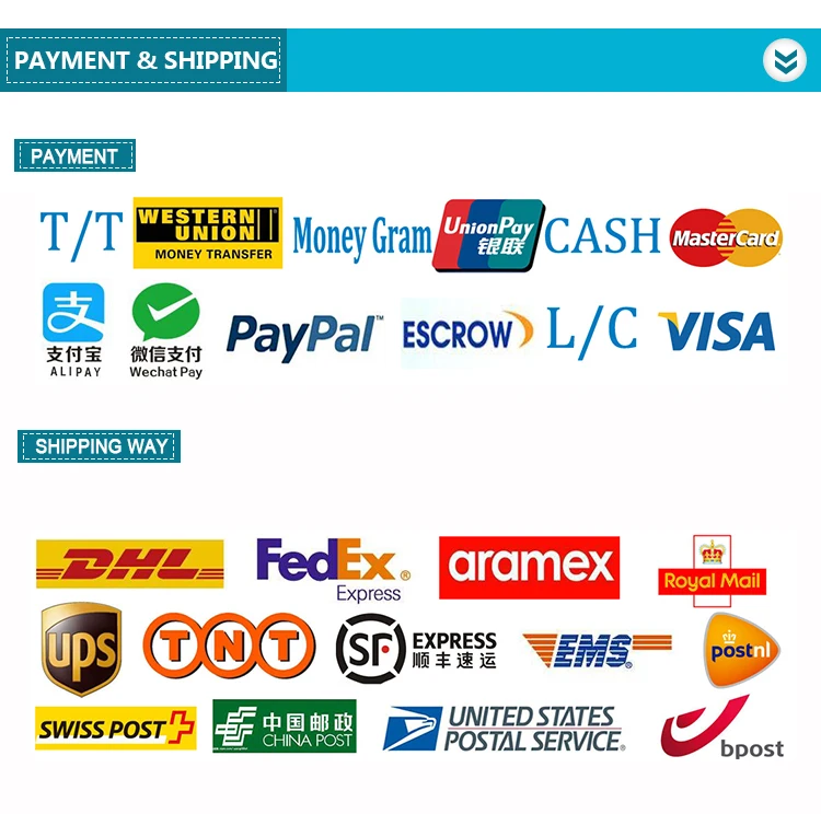 2.We accept L/C,D/P,D/A, Alipay, West Union, TT. Cash.