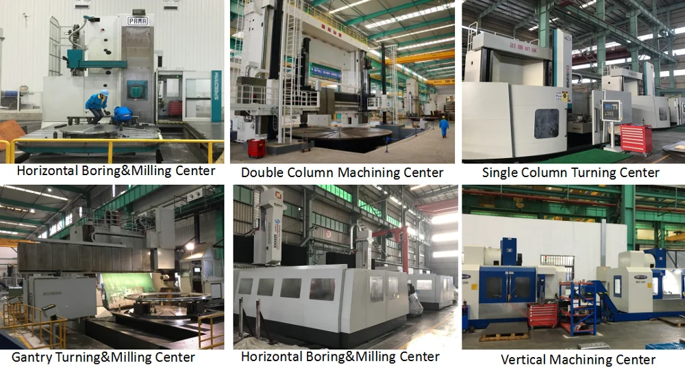 Our factory equipped with all series of world-class CNC machine tools like: Germany Schiess Double-gantry boring and milling machine, Italy PAMA large boring mill, Japan Mitsubishi horizontal boring and milling machine, China WZ large vertical turning center etc. Our advanced machine tool fleet allows us to complete even the largest machining projects ever known on earth.