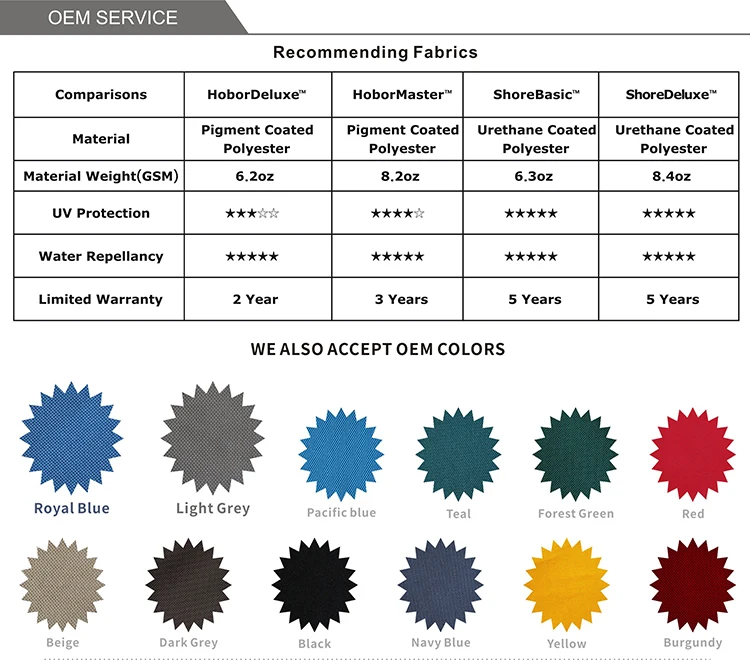 | Advantage: | Extra strength, lightweight PermaPRO ripstop fabric; | Heam: | High strong elastic cord sewn in the entire bottom of cover; |