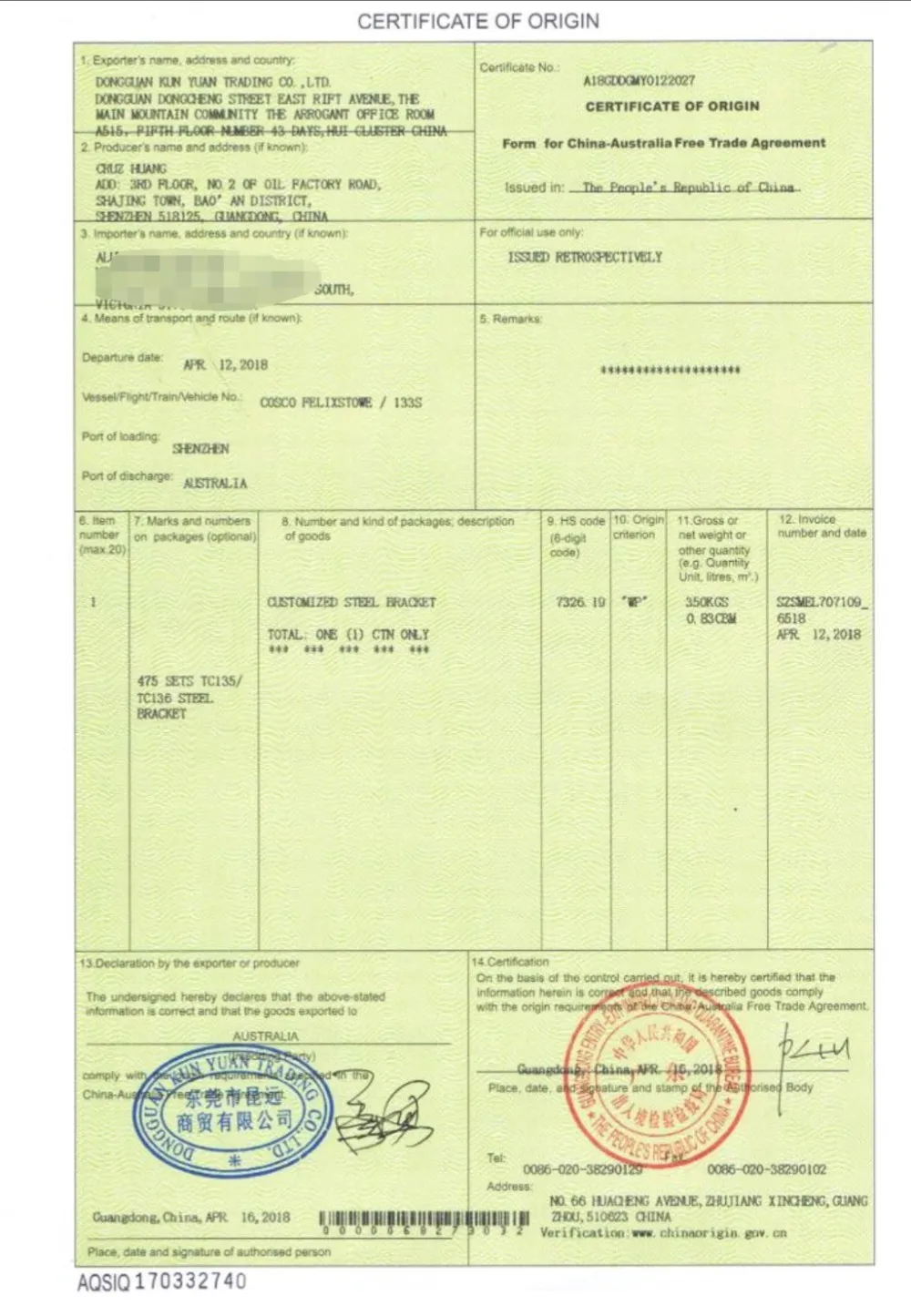 We have many types certifications, material/ COO/ RoHS, some are our own, some come from our suppliers