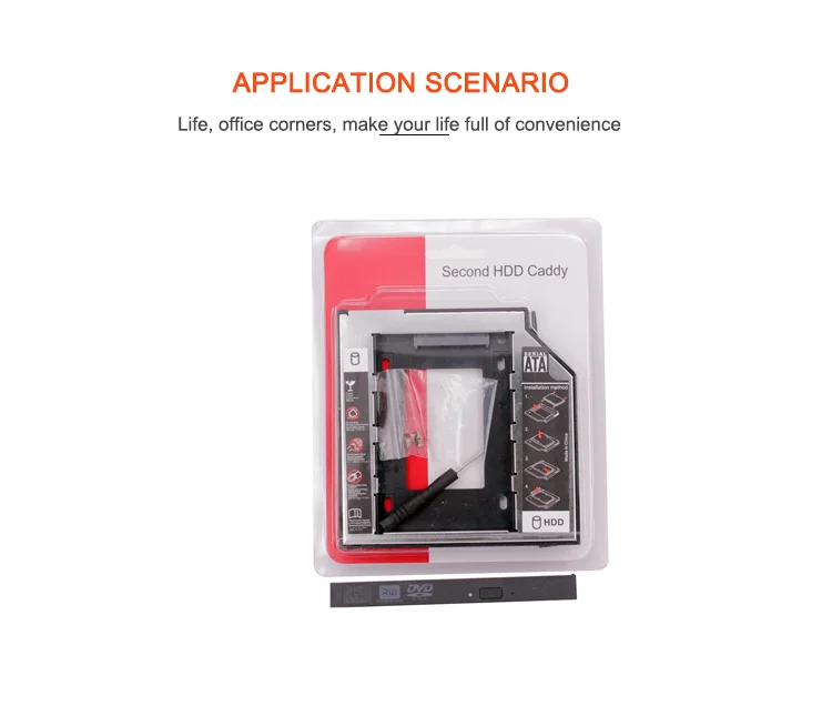 | Product Name | 9.5mm Universal SATA 2nd HDD Caddy SSD Hard Drive +Panel for DVD-ROM Optical Bay |