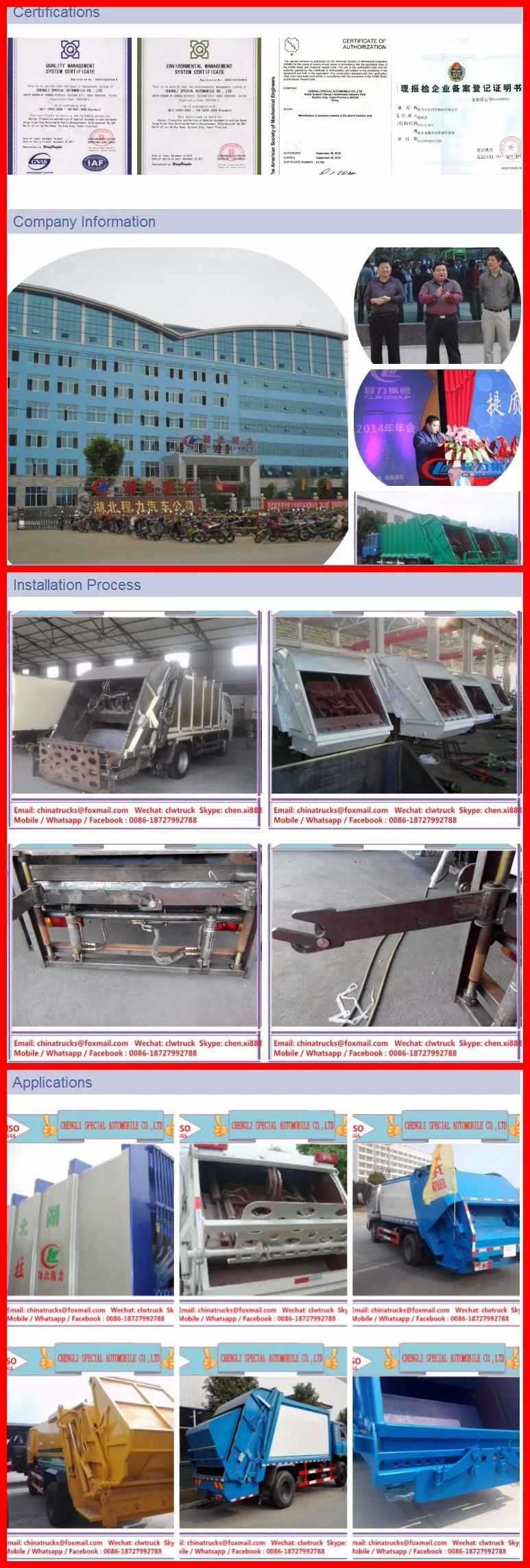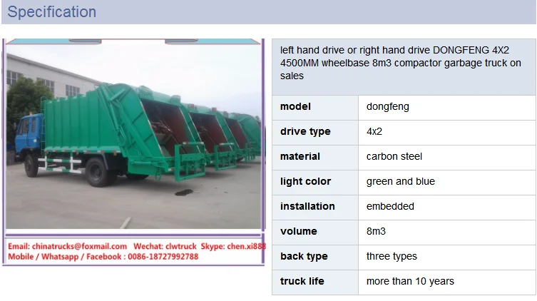 Below specification is just for your reference. More information of our Garbage Trucks, please feel free to contact with Ms. xi chen . We will customize the truck according to your requirement.