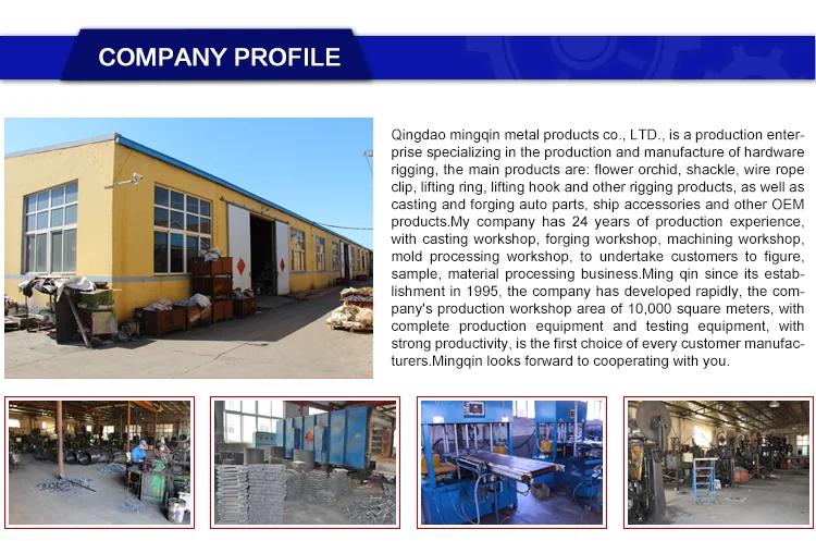 Main products | Eye bolts,Shackles,Turnbuckles,Wire Rope Clips,Load binders,Lifting Hooks,Connecting Links,Master Links,Swivels and many other rigging hardwares. |