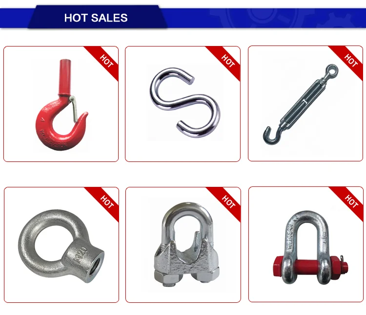 2.Our main products are shackles,eye bolts and nuts. turnbuckles, wire rope clips, hooks and load binders.