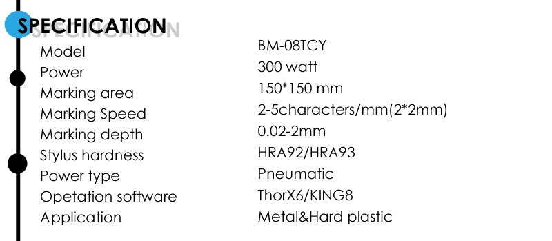 | Brand Name: | BM Marking; | Printing method: | Stylus printer, dot peen; |