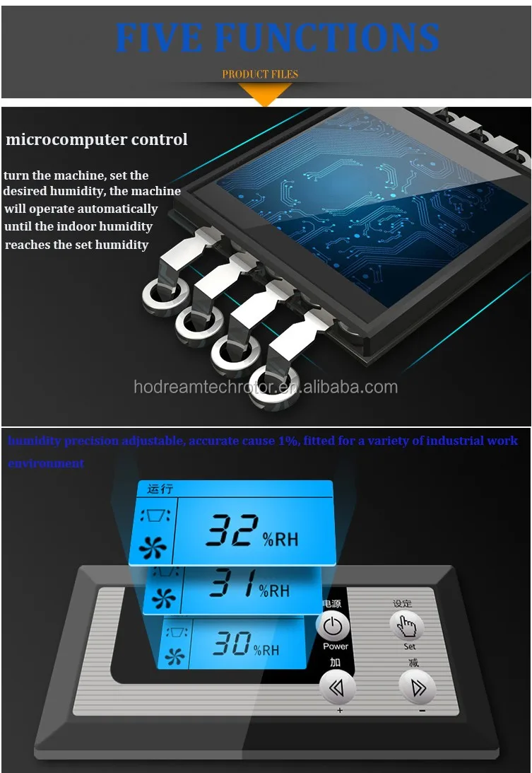 163L/D to 1200L/D high effect multi-functional adjustable humidistat commercial LED display industrial dehumidifier