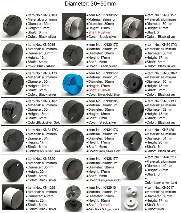 | Item: | aluminum volume control knob; | Package Type: | in plastic tray; |