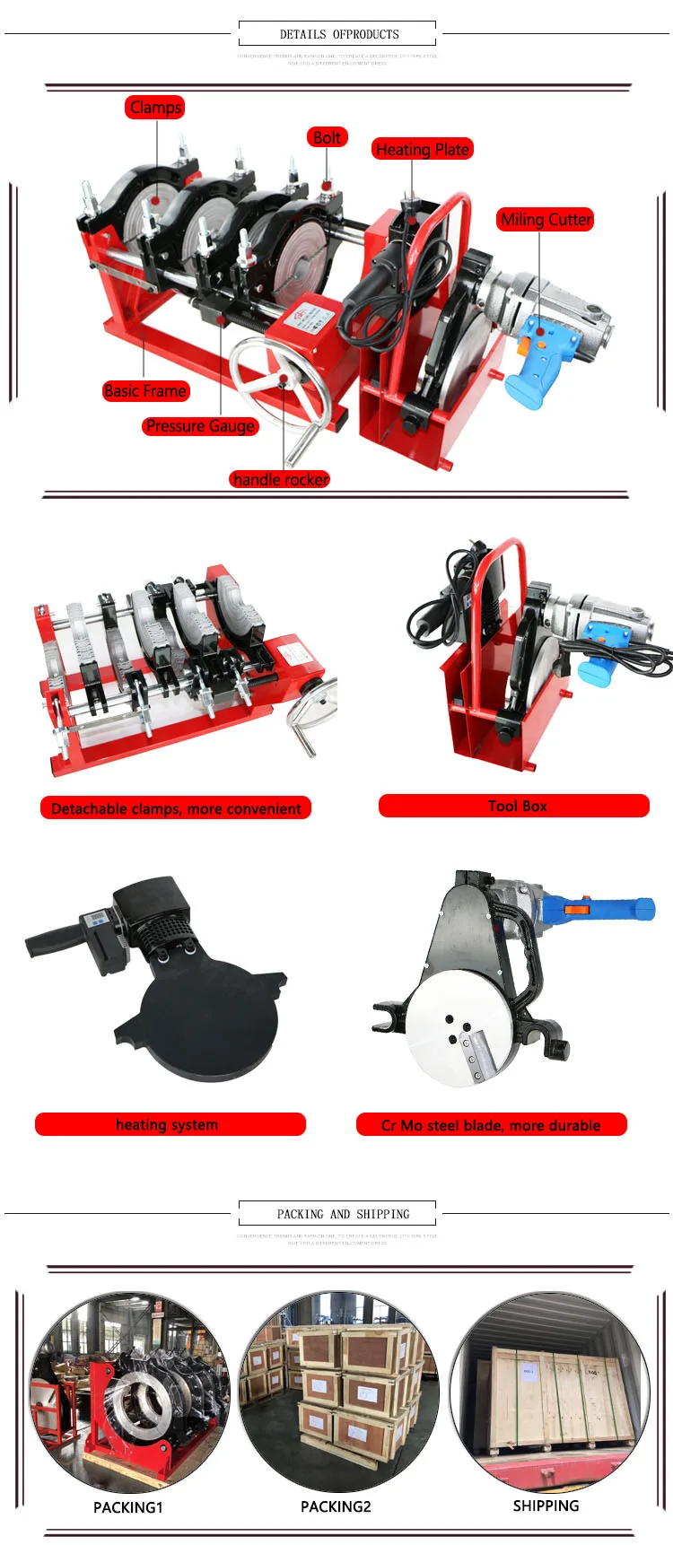 1,Suitable for butt fusion of plastic pipes made of PE, PP and PVDF material.