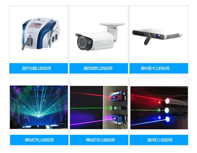 Laser diode can be used laser pointers, indicators, scanner, DVD, medical systems. Sunday’s laser diode has long time working life for more than 8000 hours even with high temperature 50 c.Sunday mainly offer the following product package of these miconductor laser: 405nm, 445nm, 635nm, 638nm, 650nm,780nm, 808nm,830nm, 850nm, 915nm, 940nm, 980nm, 1064nm, 1310nm, 1550nm, various power。