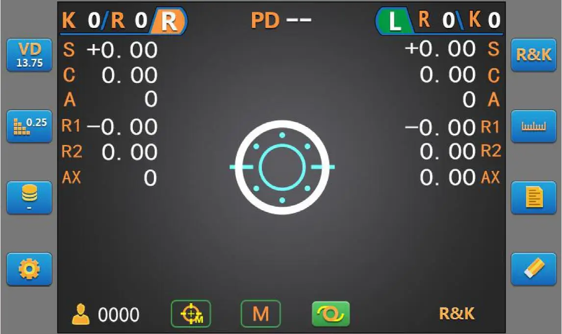 Refractive measurement | Vertex Distance | 0.0,12.0,13.75,15.0 mm |