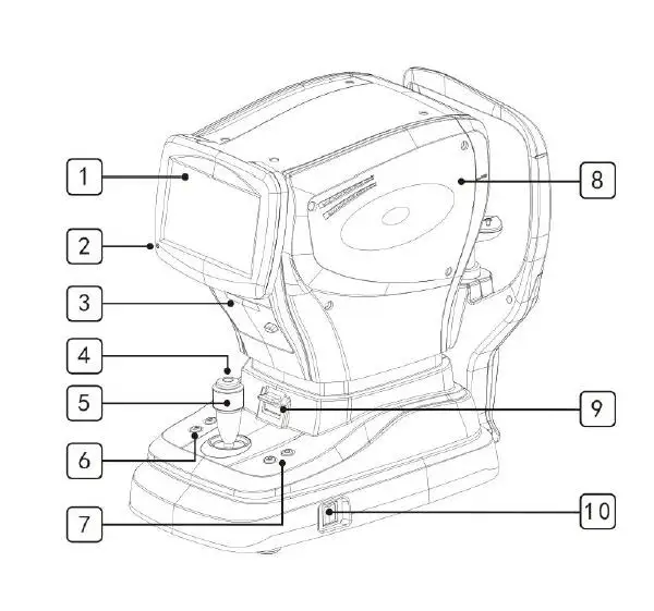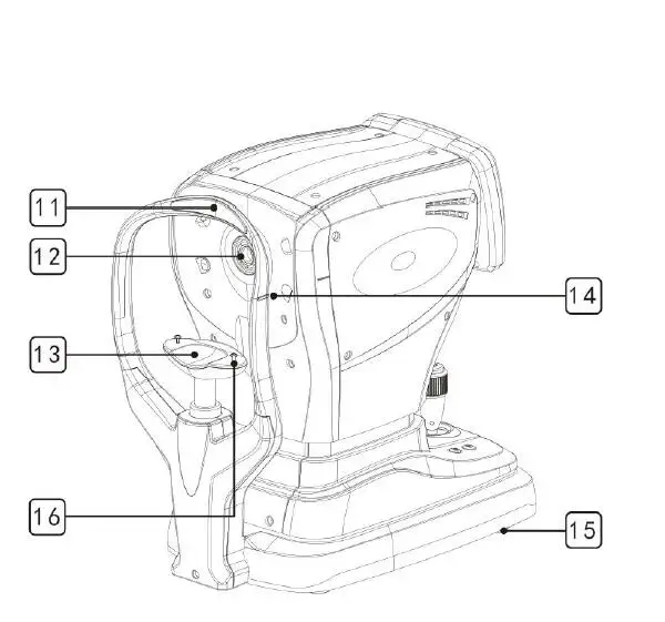 14.Eye level marker: The height of the chinrest should be adjusted so that the patient’s eye roughly aligns with this line.