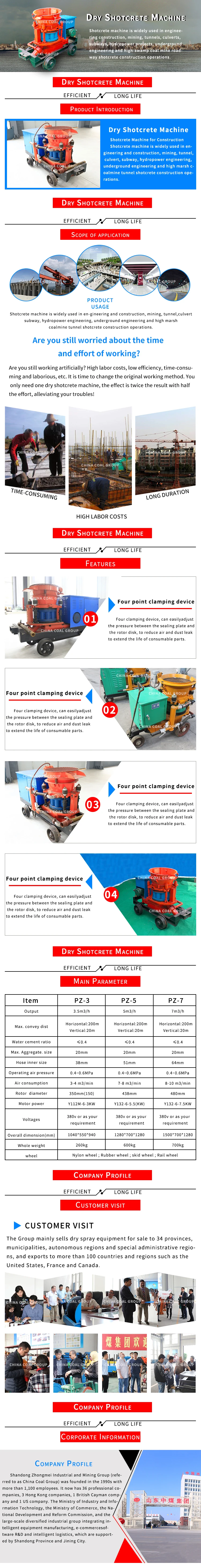 | Air Consumption: | 9~10m3/min; | Name: | PZ-5 Concrete Spray Machines; |