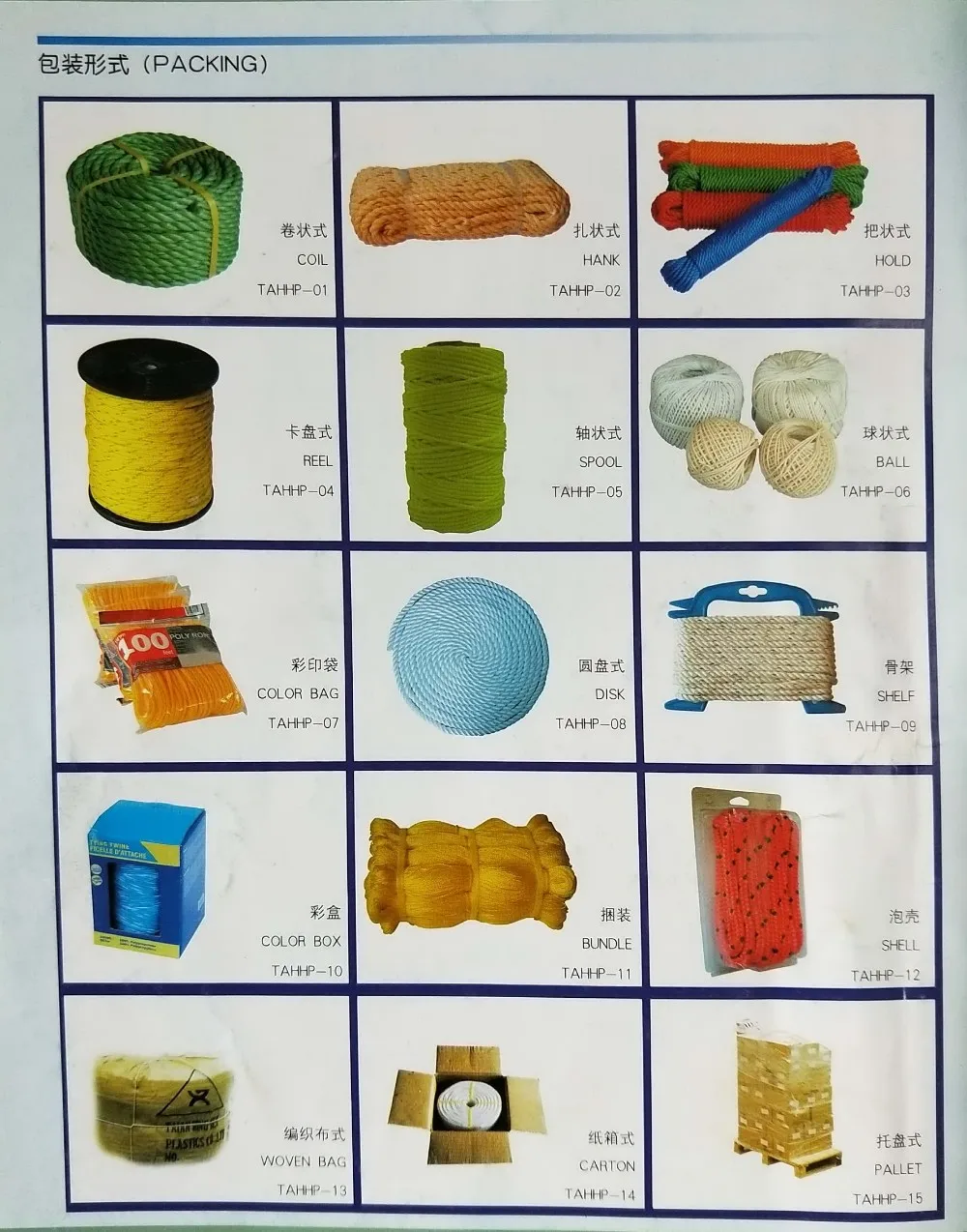 The corporation has six subordinate factories: Rope Producing Factory, Color PE Rope Factory, Vinylon Rope Factory, Net Weaving Factory, Braid Rope Factory, possessing more than 200 sets of specific equipment imported from South Korea, Japan, and Taiwan such as yarn-drawing machines, circle-twisting machines, rope producing machines, net machines, braided rope machines, etc.