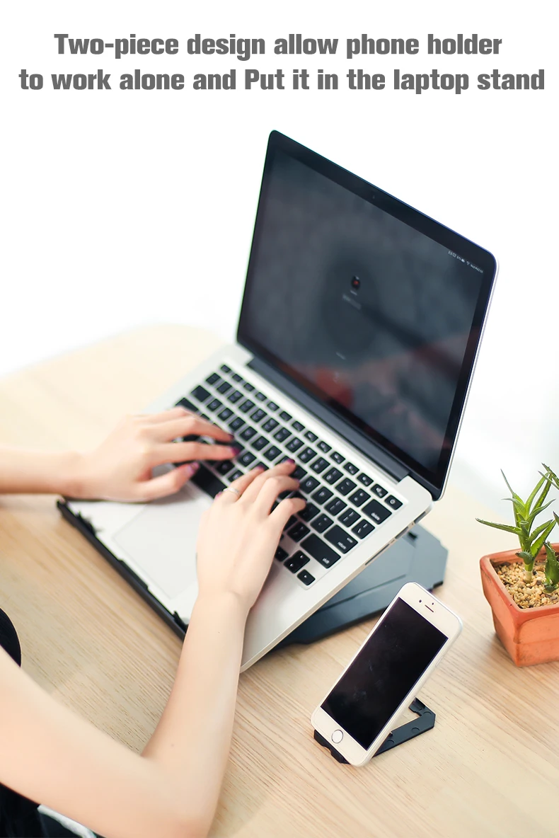 • Two-piece design allow phone holder to work alone and put it in the Laptop Cooling.