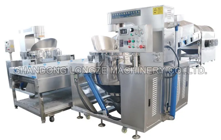 Shandong Longze Machinery is a famous professional designer and manufacturer of food processing machines with many patents and BV, SGS certifications. Our main products include popcorn machine and production line, cooking mixer, jacketed kettle, vacuum cooker.