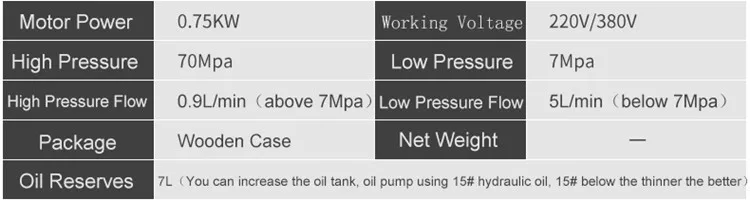 2. When leaving the factory, the pressure has been set to 70 Mpa, and the adjustable range is 20-70 Mpa.