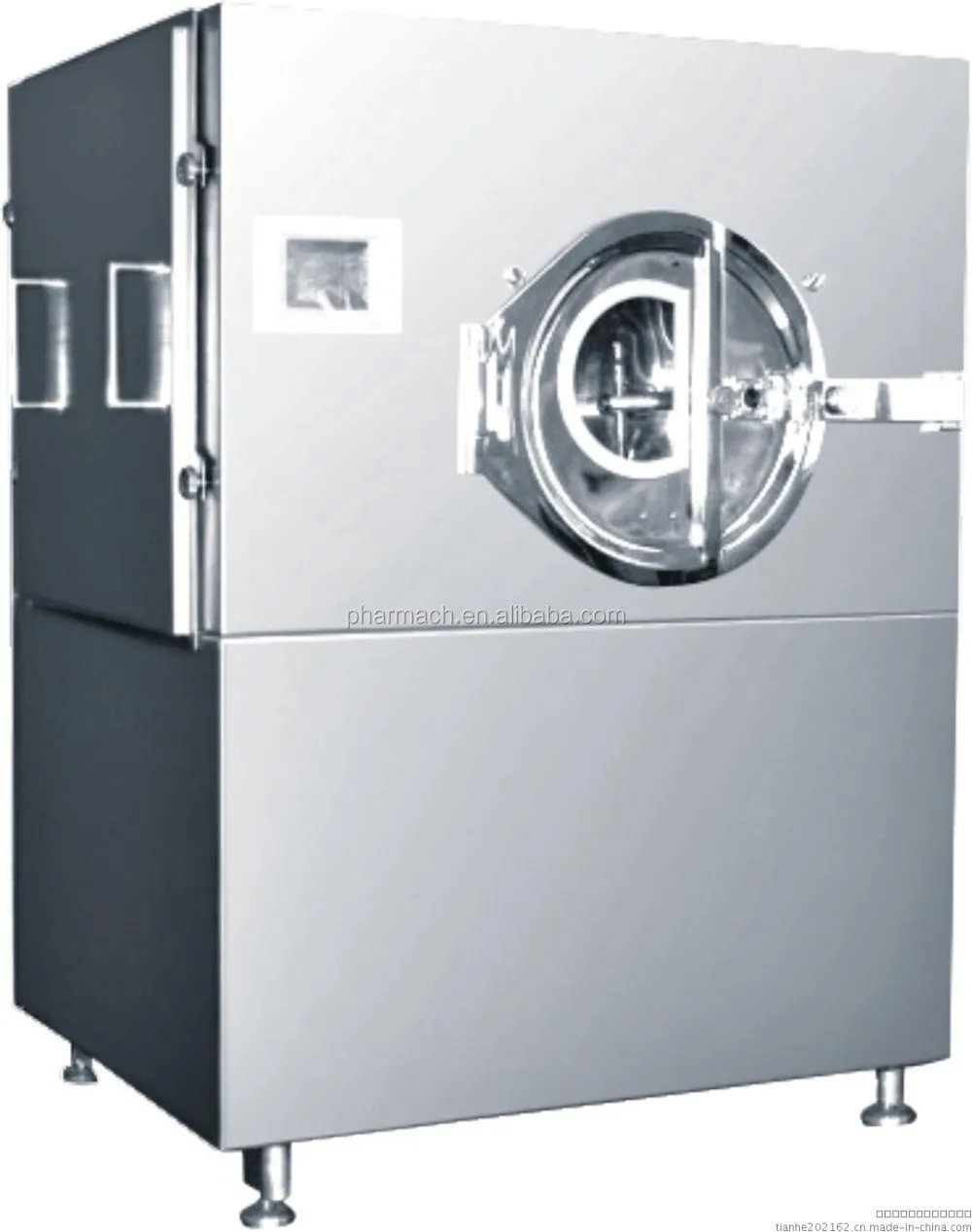 6),Film coating machine contains the mechanical device of cauldron wrapping little material can coat at least 20kg plain pills in 150 type coating machine, regulate through it inherent machinery, make a small mount of medium coat in cauldron and will not cause the wasted of dressing and greatly improve the scope of appliance