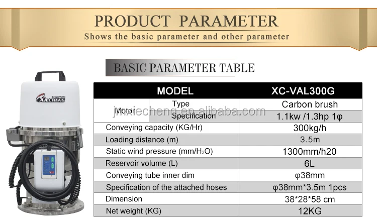 High Rotating Speed 300g 1hp Industrial Hopper Plastic Auto Loader Machine
