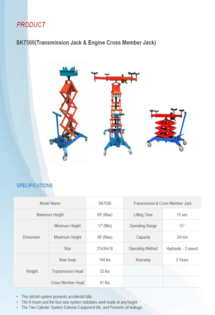 | Features: | Dual Hydraulic Jack; | Warranty: | 2 Years; |