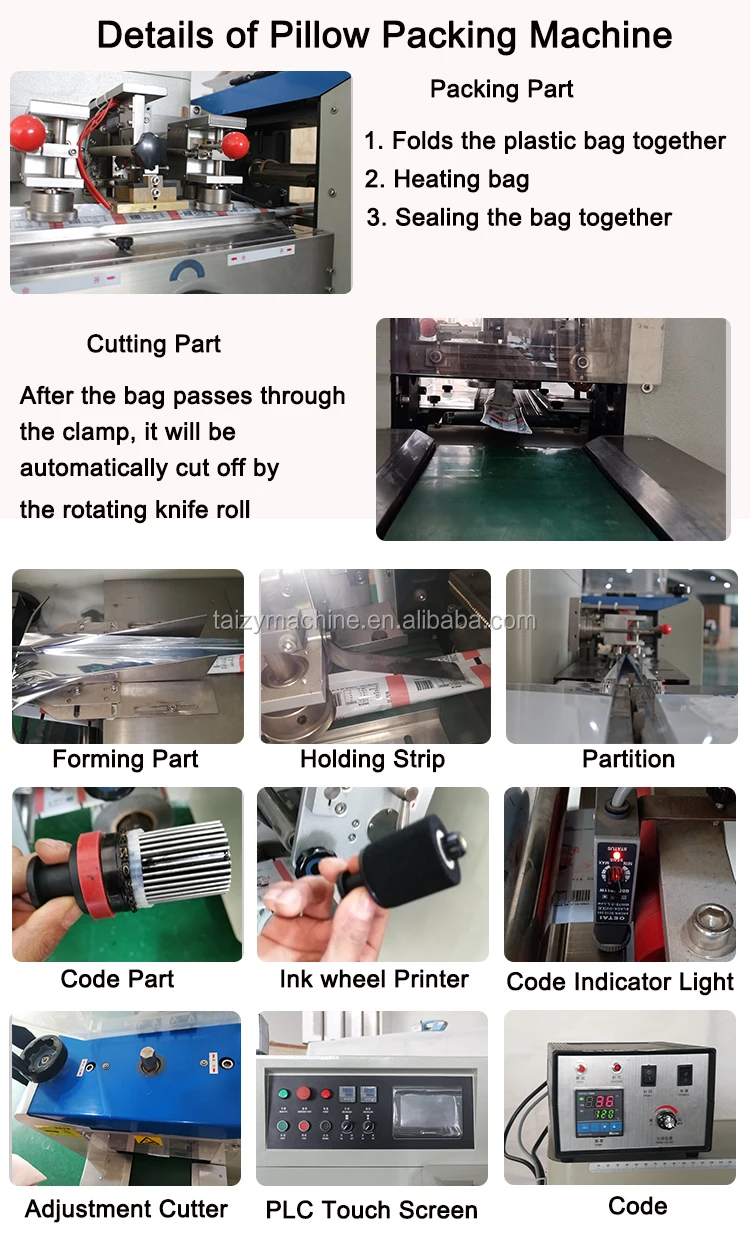 6. The pillow packing machine is equipped with a positioning stop function, which does not stick the knife and does not waste the film.