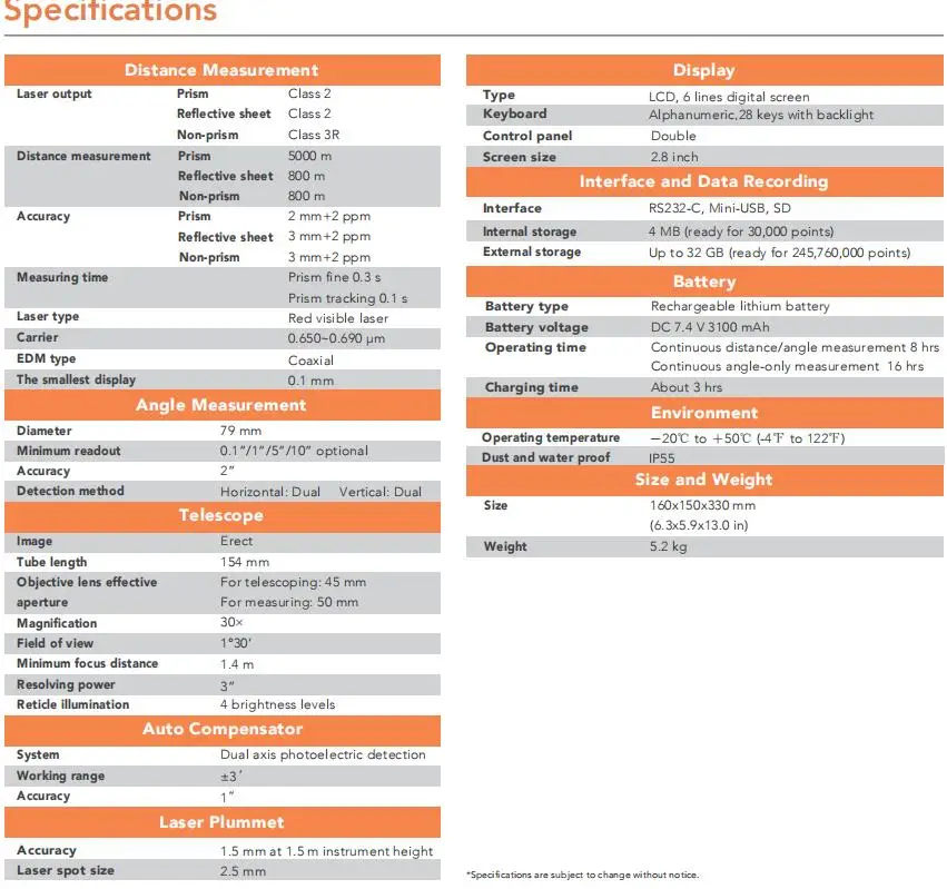 | Reflectorless: | 800m; | Type: | Reflective; |