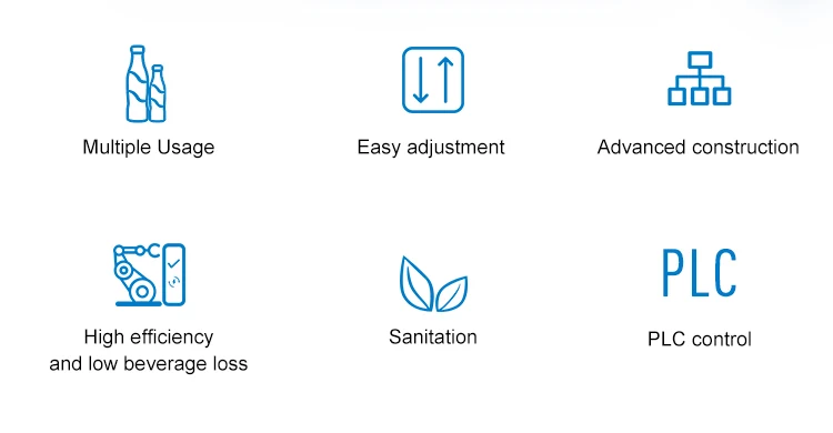(5)The advanced OMRON programmed controller (PLC) is adopted to control the machine to run automatically while a transducer is used in the bottle -entering chains to adjust speeds and coordinated with the transducer of the main machine to make the operations of moving bottle forward steadily and reliably.