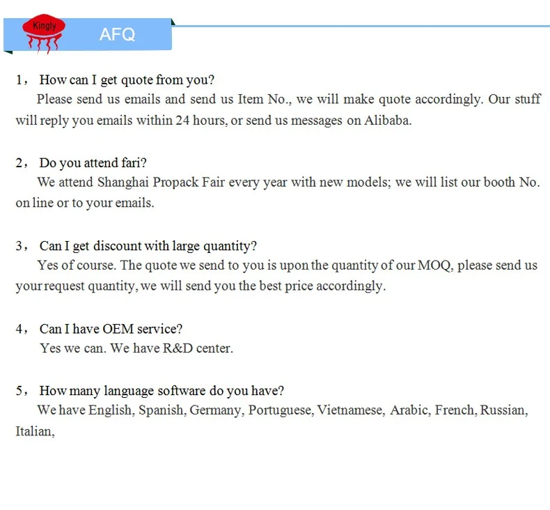 6) Language: We have professional sales team who are good at English to ensure zero communication barriers.